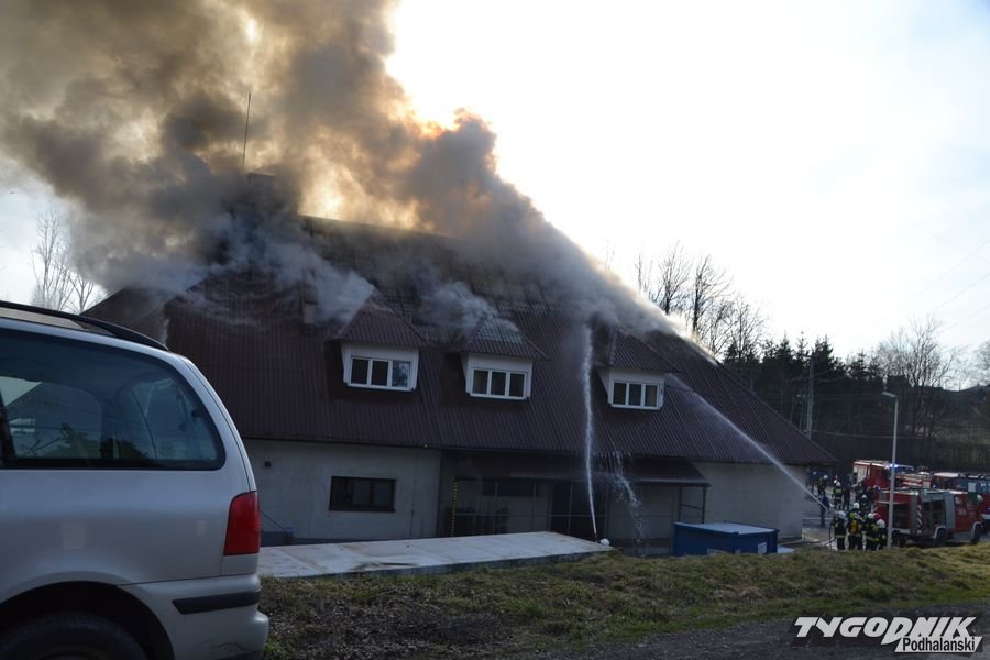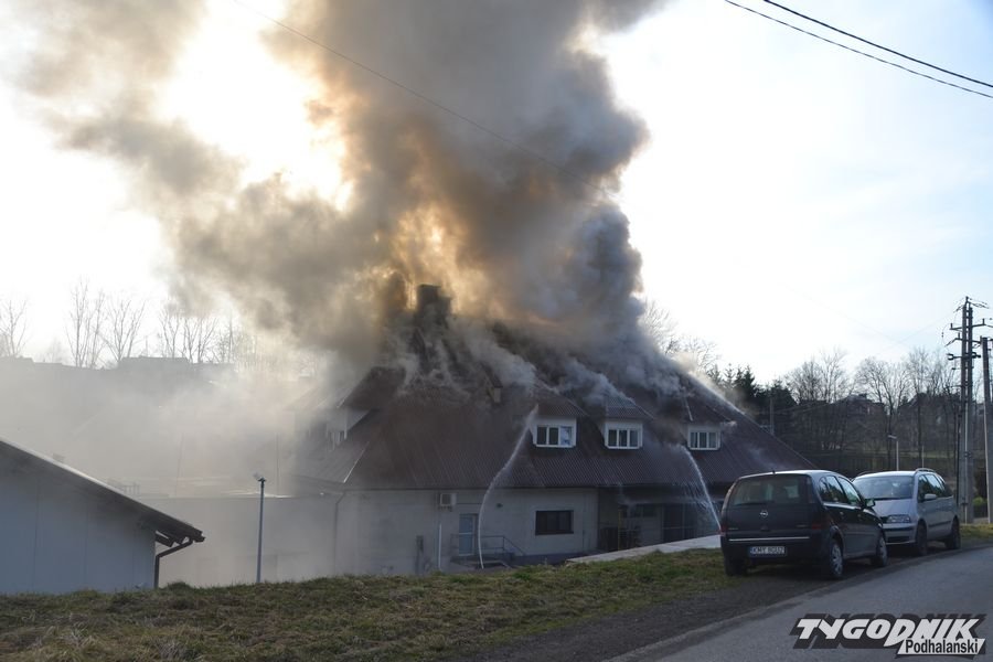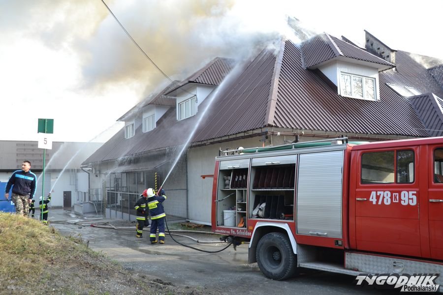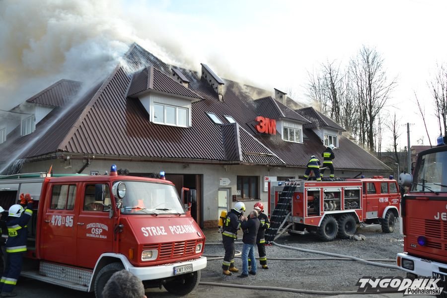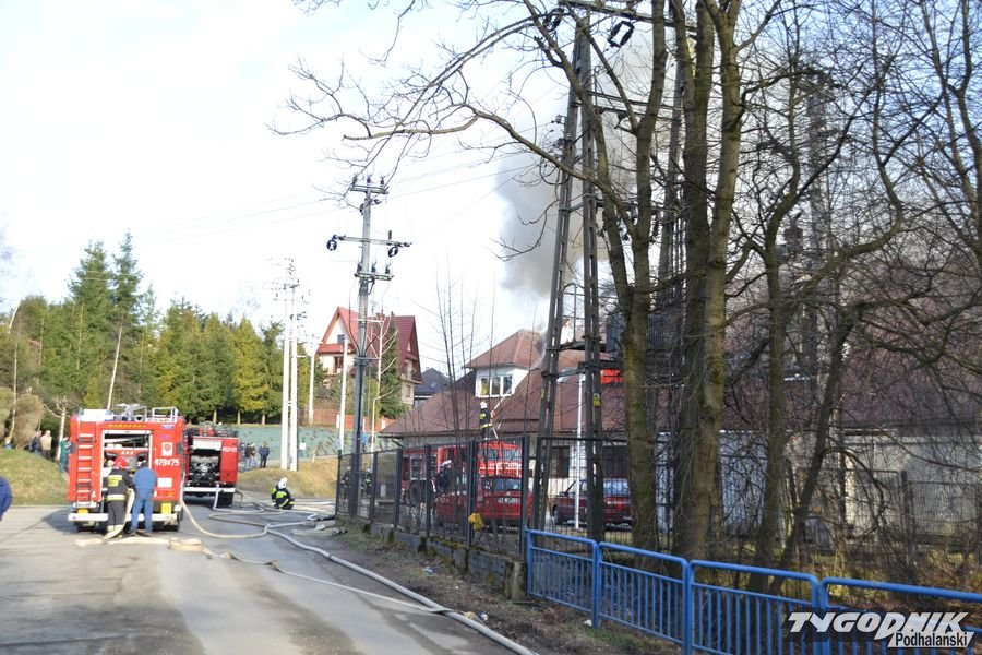 Potężny pożar w Skomielnej Białej. Płonie fabryka tarcz ściernych