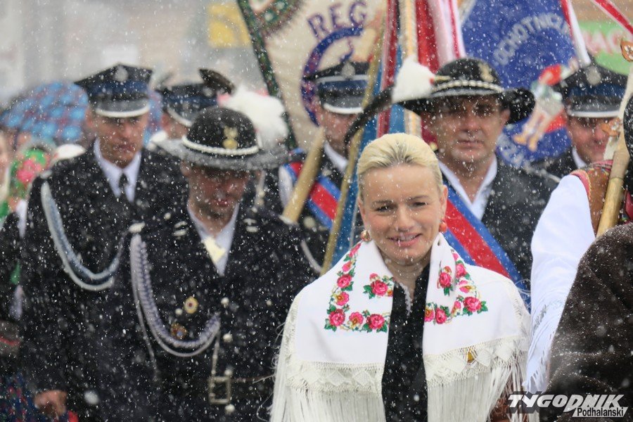 W śnieżnej zadymce przez Poronin przemaszerował wczoraj orszak pocztów sztandarowych jakiego jeszcze tutaj nie widziano.