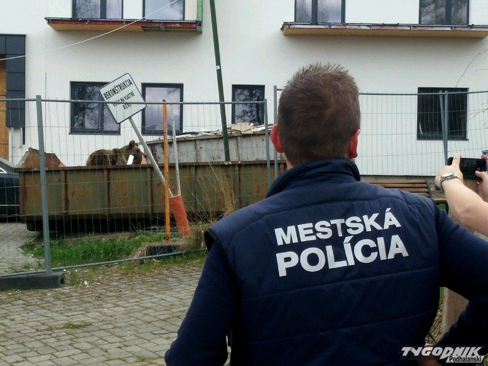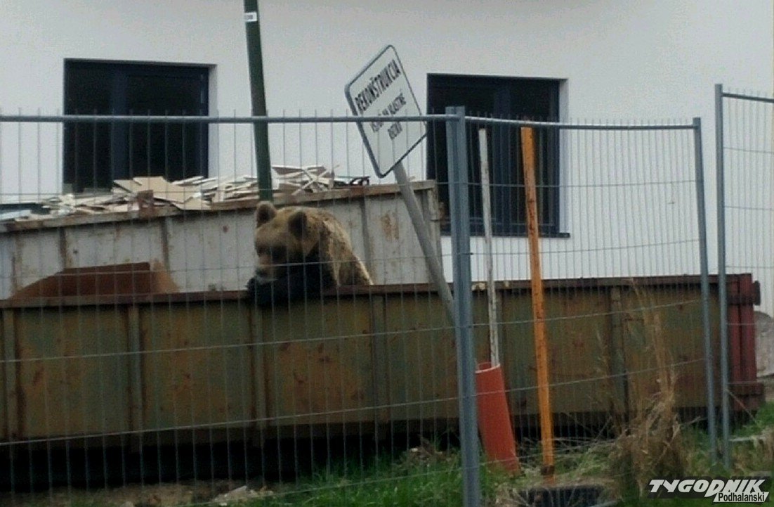 Niedźwiedzica z dwoma małymi dziś ok. 7 rano wystraszona przez prace budowlane weszła na wierzchołek drzewa w Starym Smokowcu po słowackiej stronie Tatr..