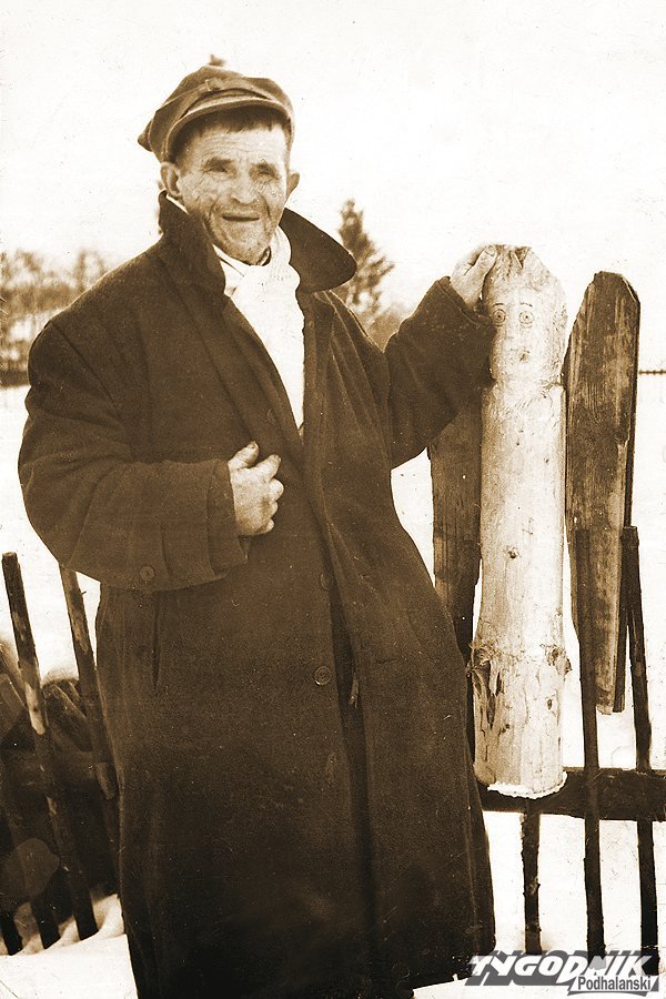 – Przejęty był swoim rzeźbieniem – twierdzi pani Krystyna. – Kiedyś do mnie zaszedł i mówi, żebym przyszła, bo ma dla „trzok świyntych”. Przyjechałam do jego drewutni. Patrzę, są dwa świątki, trzeciego nie ma, pewnie ktoś już go zabrał. A on mówi: „Macie trzok”. No jak trzy, skoro są dwa? A on mi tłumaczy: „Tu macie panienkę Marię, a tu Dzieciątko” i ta jedna figurka miała zastąpić dwie. Trzeci był święty Józef – opowiada.
