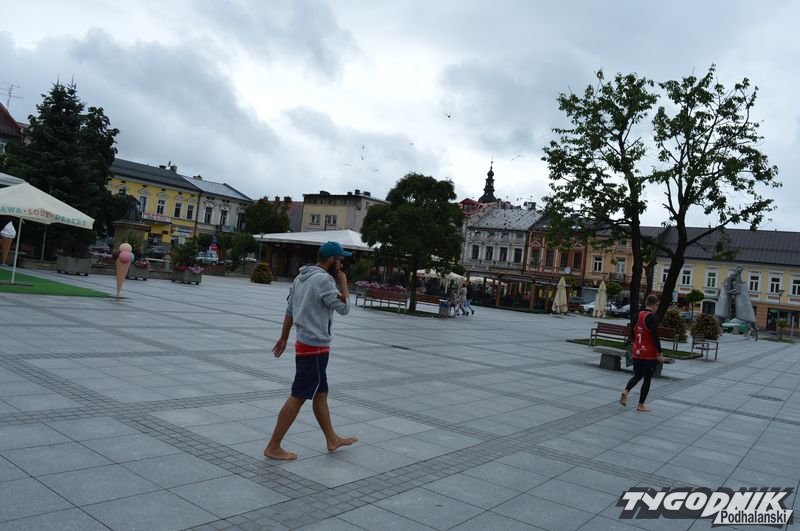 Zimno jak cholera, a na Rynku w Nowym Targu 62 tony piasku, a do tego jeszcze niektórzy biegają bez butów. O co chodzi?