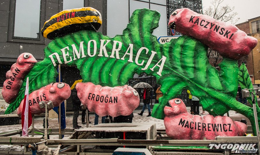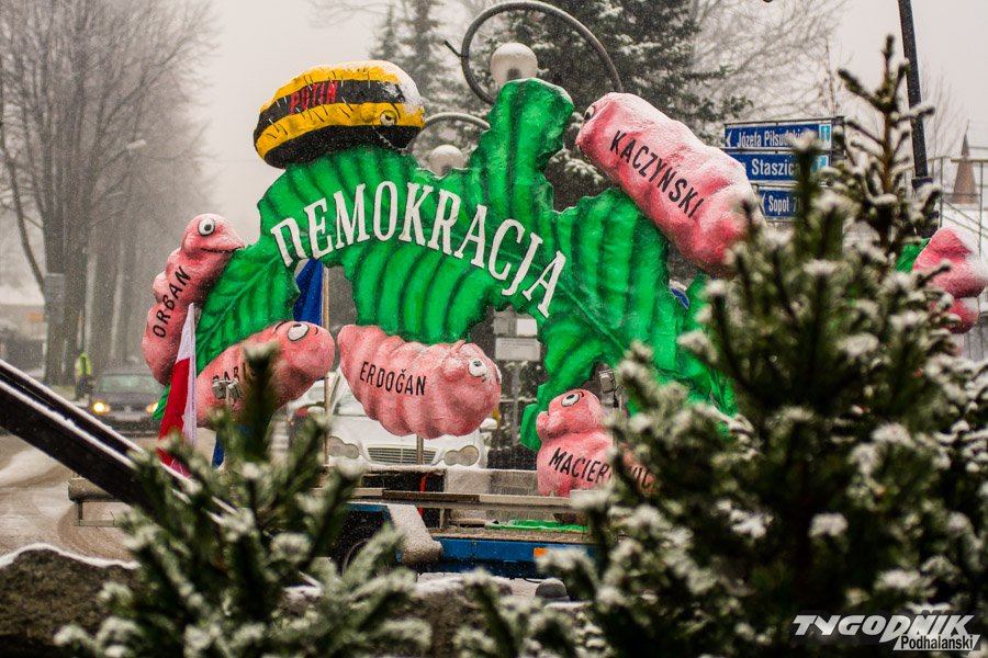 "Liść Demokracji" taki napis widnieje na platformie, która przemierza dziś podhalańskie drogi.