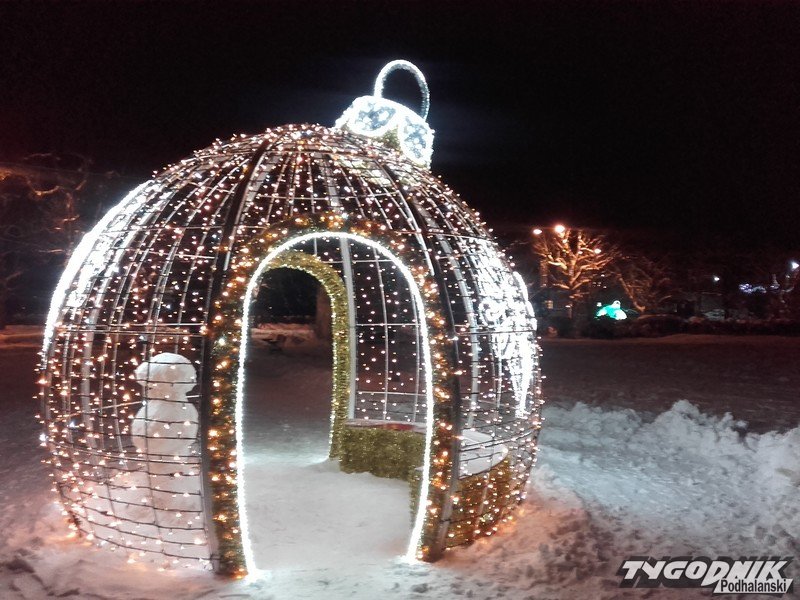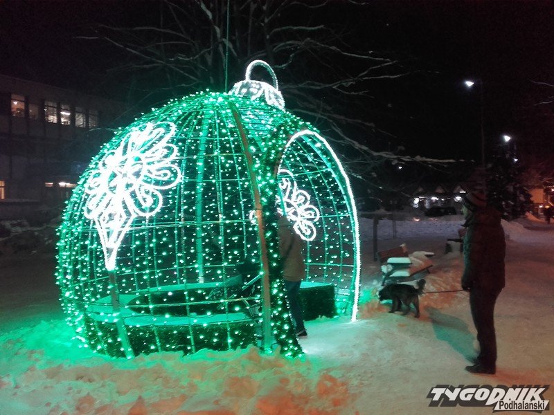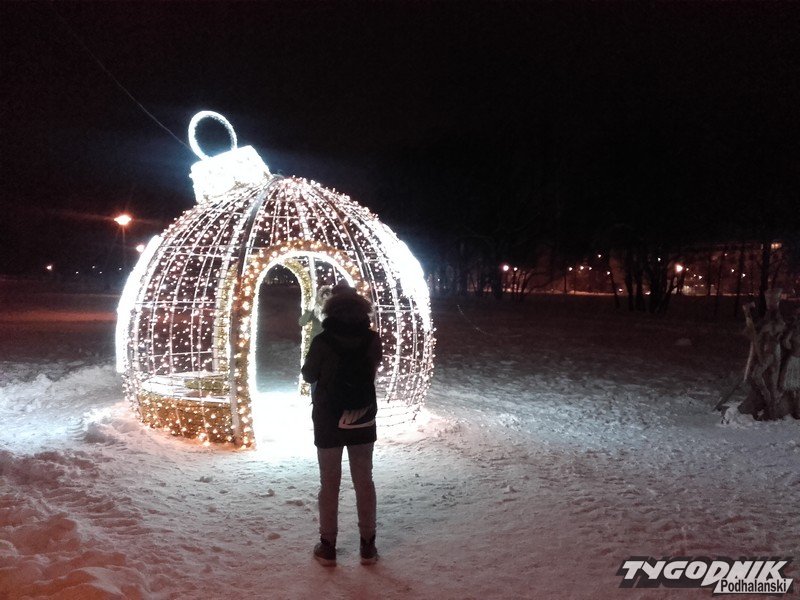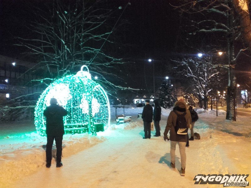 Ekipy techniczne jeżdżą po mieście i rozświetlają świąteczno-noworoczne ozdoby nad zakopiańskimi ulicami. W tym roku nie zabrakło nowości - do świecących aniołów, wielkiego górala dołączyły dwie świetliste bańki choinkowe. Jedna stoi przy ul. Kościuszki przed urzędem miasta, druga na Równi Krupowej przy napisie "Zakopane".