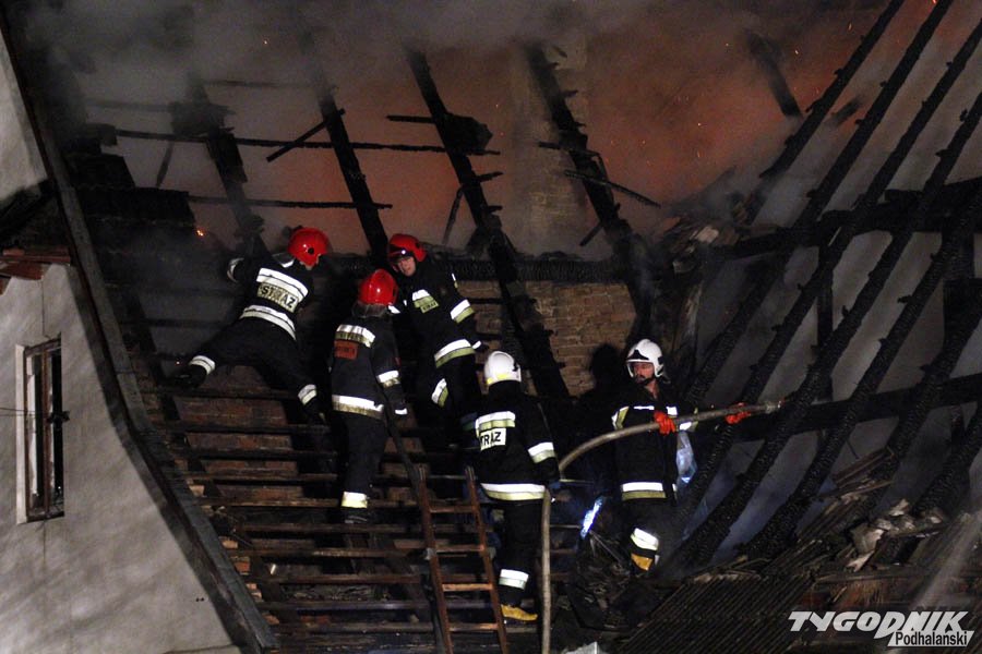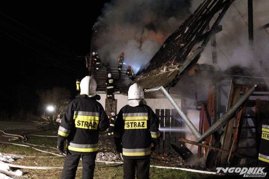 Pożar wybuchł przed trzecią nad ranem w niedzielę. Płomienie pojawiły się w zabudowaniach gospodarczych i szybko przedostały na przybudowany do nich dom. Mieszkańcy zdołali się w porę ewakuować.