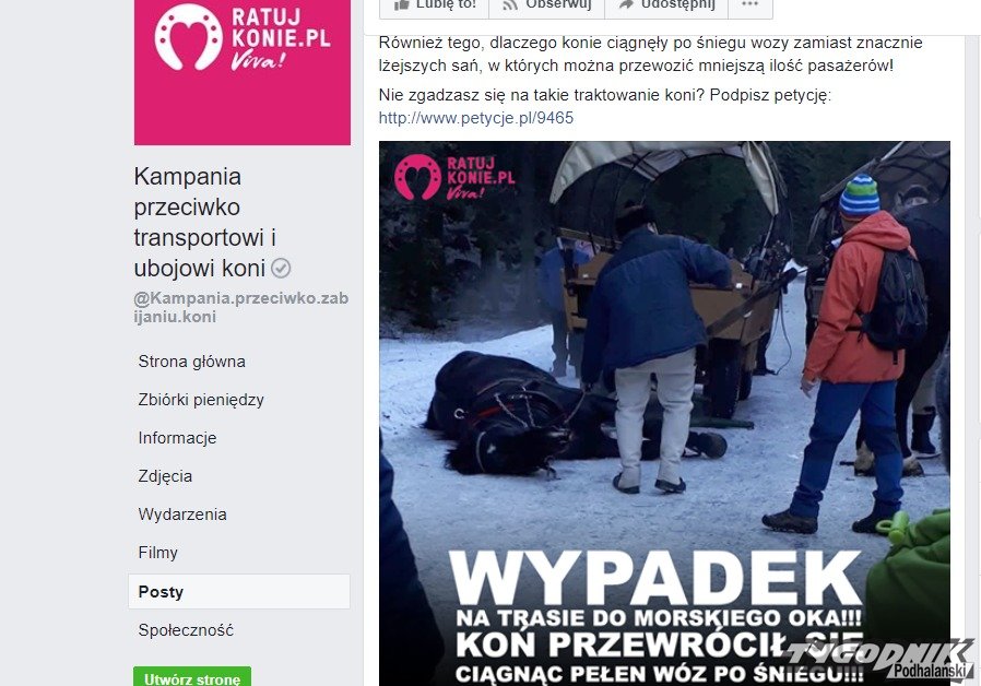 "W święta na trasie do Morskiego Oka przewrócił się koń. (...)