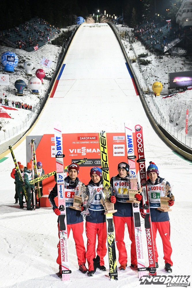 141.5 metra - to był niesamowity skok Kamila Stocha, który dał nam zwycięstwo w konkursie drużynowym na Wielkiej Krokwi. To nowy rekord Wielkiej Krokwi i pierwsze zwycięstwo Polaków w historii zawodów na naszej skoczni.