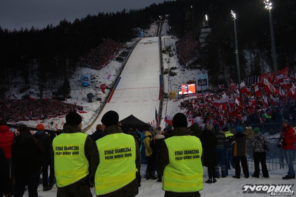 Po świetnych skokach Kamila Stocha (134 m), Stefana Huli (136 m), Macieja Kota (133) i Dawida Kubackiego (128,5 m), Polacy o 7 punktów wyprzedzali reprezentację Niemiec. Na trzecim miejscu byli Norwegowie.