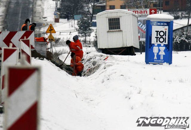 W kontekście Bezpieczeństwa i Higieny Pracy dostęp do toalety to kwestia kluczowa. Tym bardziej jeśli front robót znajduje się w szczerym polu między torfowiskami.