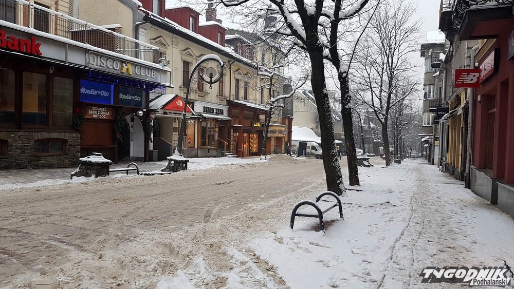 Po opadach śniegu ulice w Zakopanem są sypane solą. Przenosi się ona na chodniki i w wielu miejscach chodzi się po prostu fatalnie.