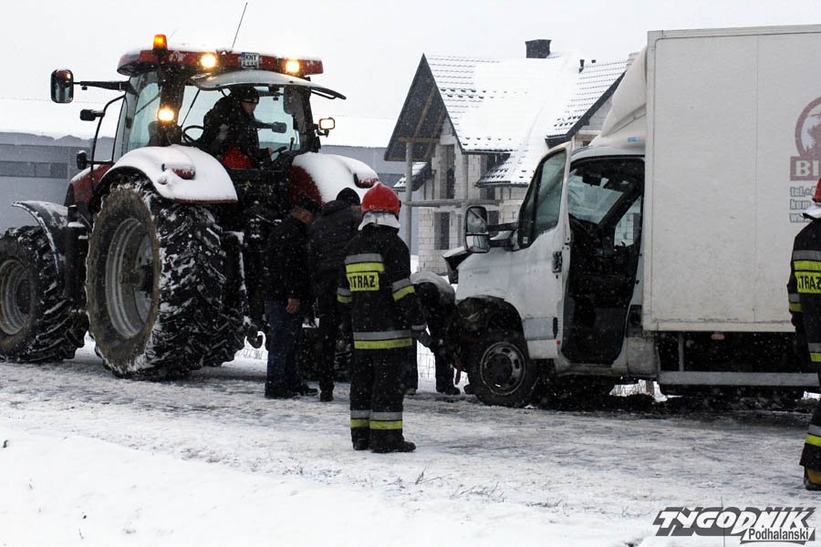 Wypadek zdarzył się około siódmej na drodze wojewódzkiej w Rogoźniku. Jak wstępnie ustaliła policja do zderzenia doszło, gdy na śliskiej nawierzchni osobowy volkswagen najechał na tył innego auta osobowego. Uderzony pojazd zjechał na przeciwny pas i zderzył się czołowo z samochodem dostawczym.