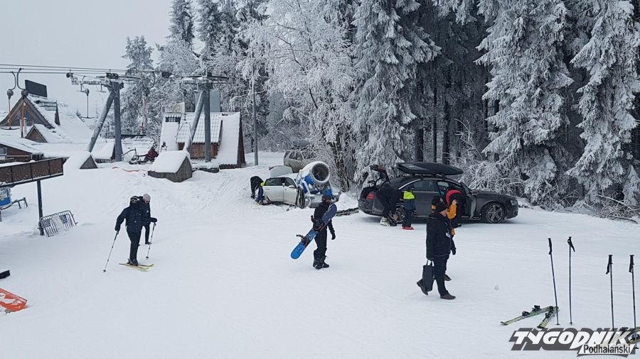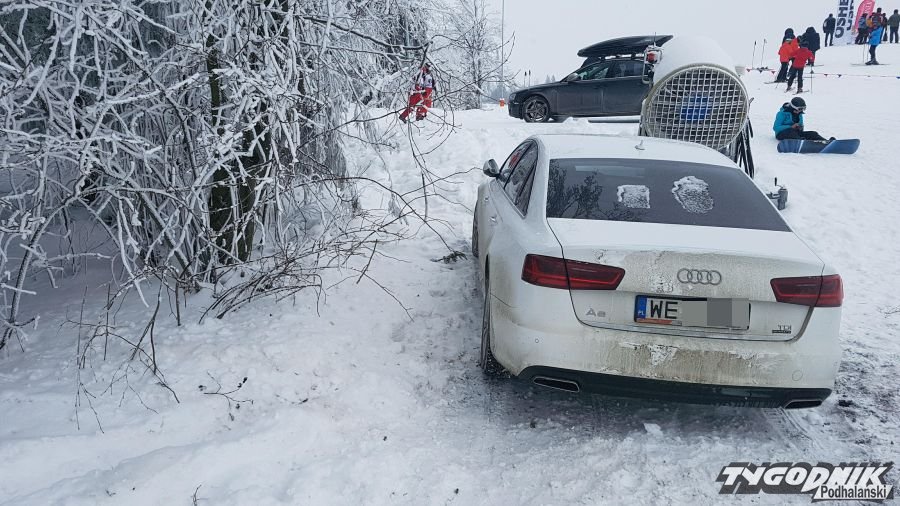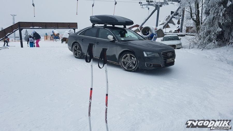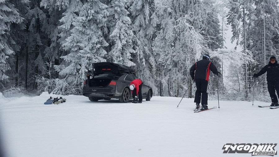 Ci, którzy kochają zakładać narty siedząc na progu samochodu potrafią wykorzystać każda możliwość. Na Kotelnicy kilku kierowców urządziło sobie parking niemal na stoku.