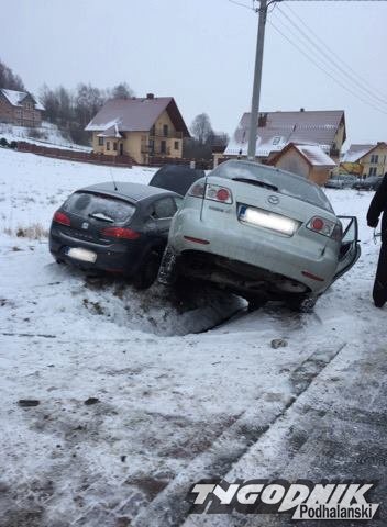 Zderzenie dwóch samochodów osobowych na głównej drodze.