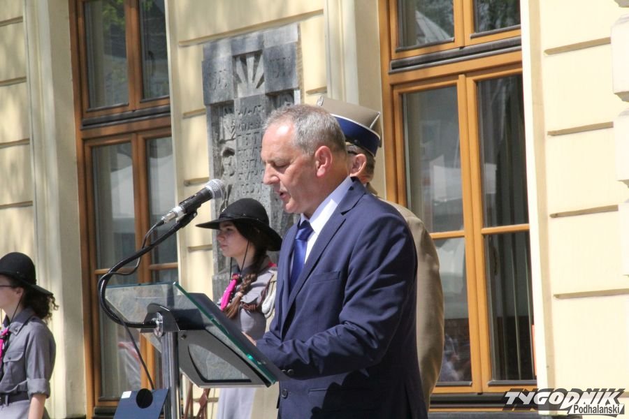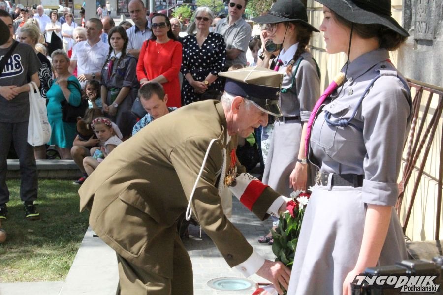 W samo południe nowotarżanie złożyli kwiaty pod Tablicą Pamiątkową wiszącą na ścianie Ratusza.