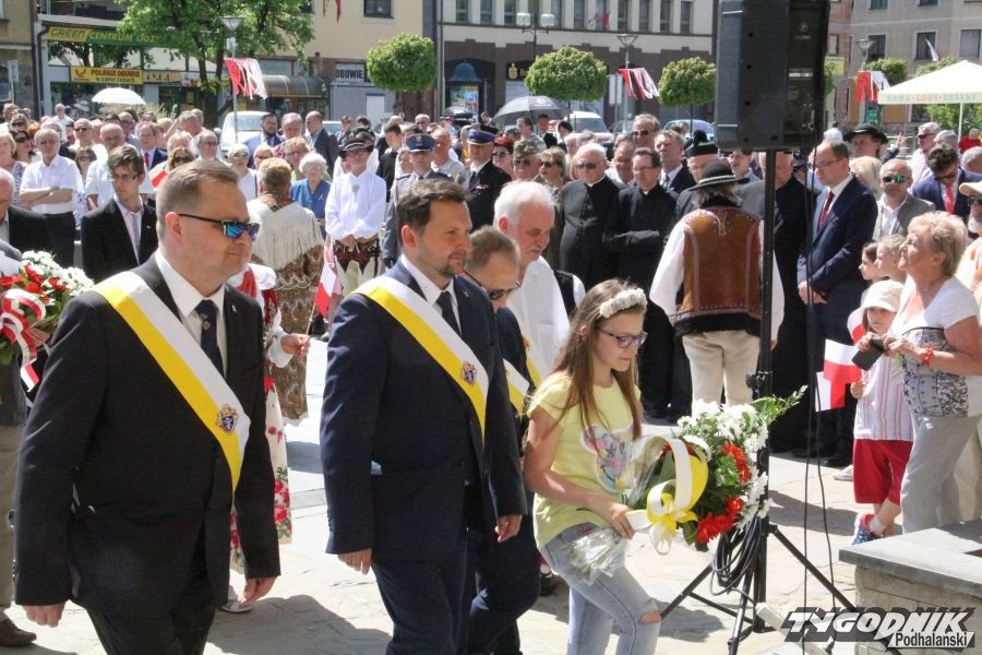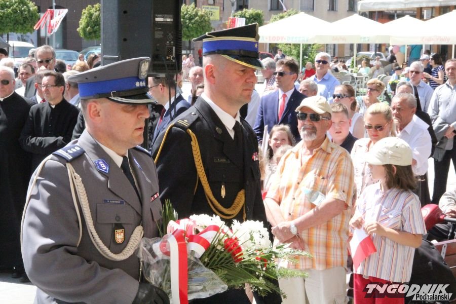 Wcześniej w ogrodach kościoła św. Katarzyny odbyła się Msza św. w intencji Ojczyzny, a po niej zebrani przemaszerowali w pochodzie na Rynek. Jak tradycja nakazuje - orkiestra miejska odegrała Mazurka Dąbrowskiego i Rotę, starosta przemówił przypominając o potrzebie ogólnonarodowej zgody, a przedstawiciele różnych środowisk zgodnie ustawili się w kolejce, by złożyć kwiaty pod tablicą upamiętniającą Cud nad Wisłą.