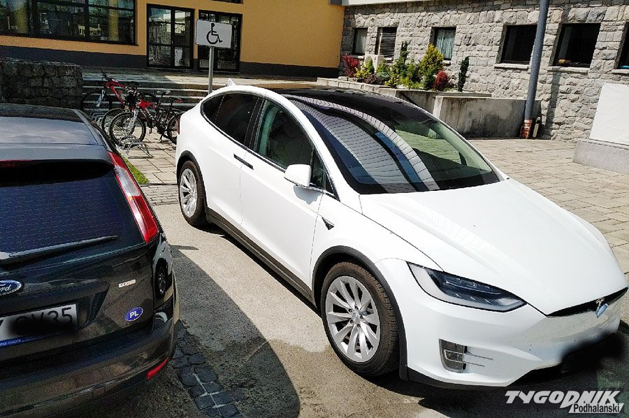 Tesla na miejscu dla niepełnosprawnych