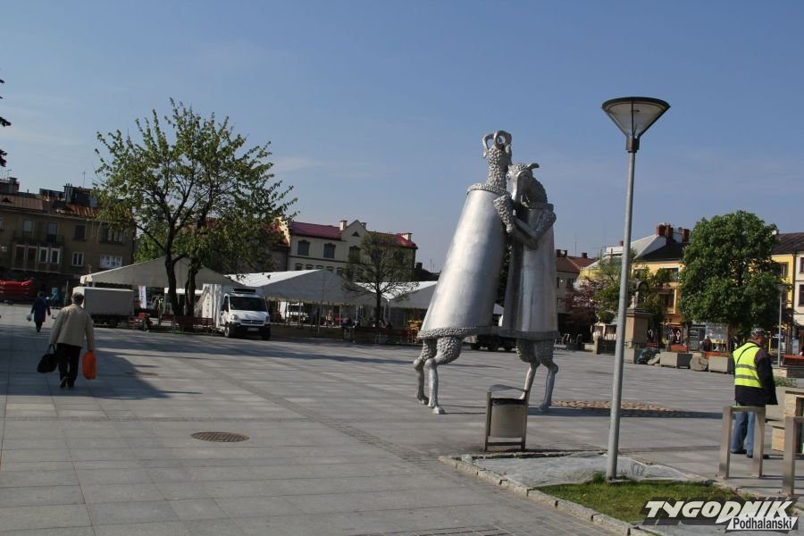 Jak na razie w Nowym Targu najbardziej rzucają się w oczy owce na Rynku - rzeźba Michała Batkiewicza.. / Fot. Józef Figura