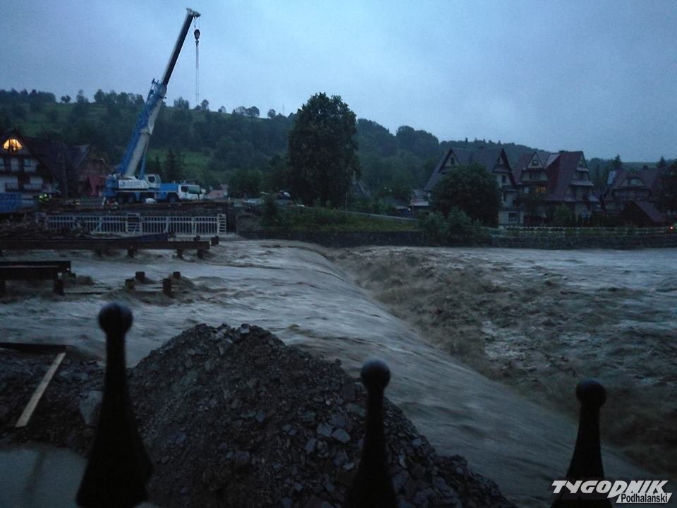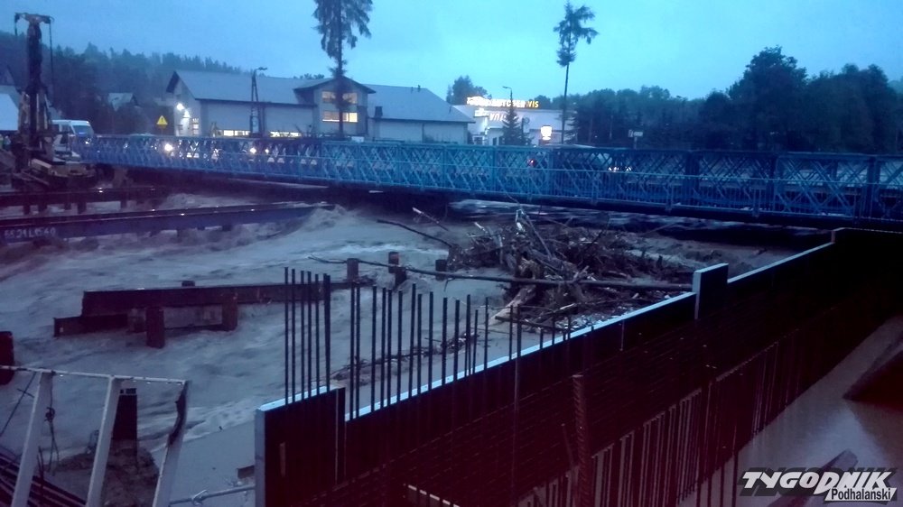 Ledwie kilkadziesiąt centymetrów dzieli rzekę Biały Dunajec od przelania się przez most tymczasowy na zakopiance. Sztab kryzysowy zamknął przejazd do odwołania. Droga jest zamknięta już od Suchego