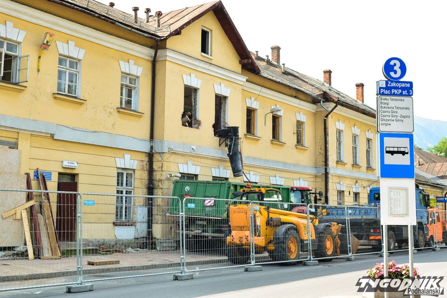 Trwa remont zrujnowanego dworca PKP w Zakopanem. Na razie prace trwają głównie wewnątrz budynku.