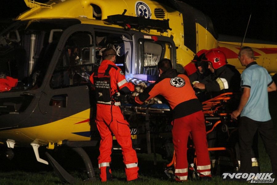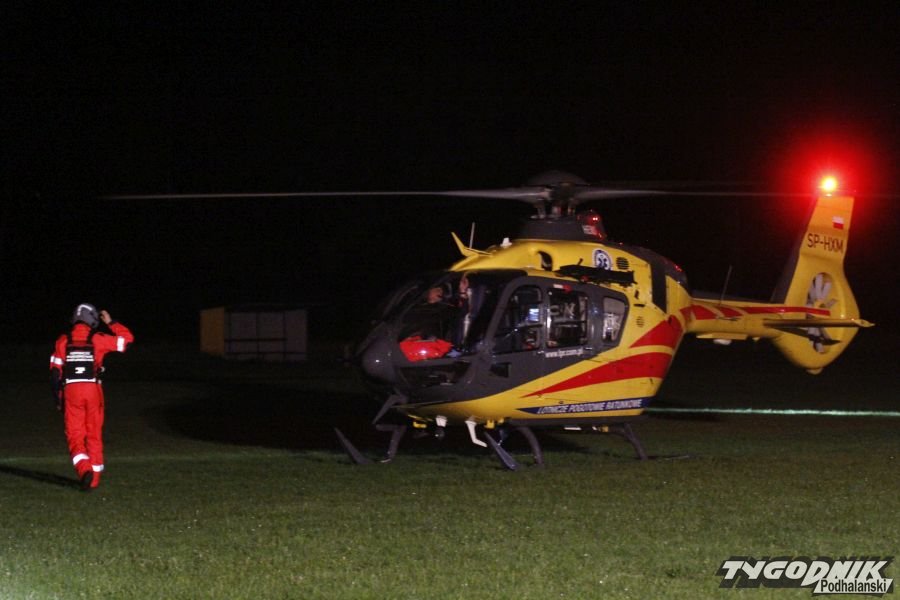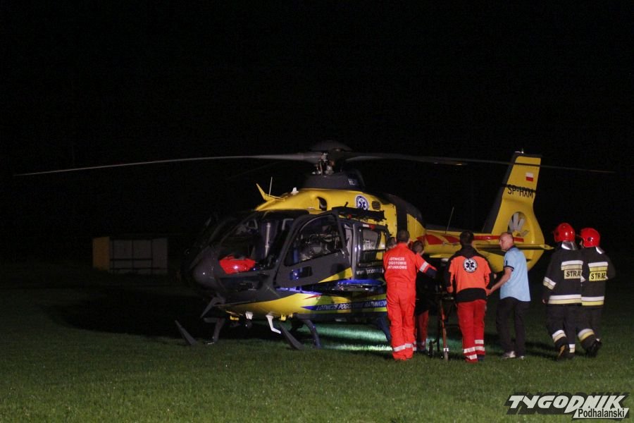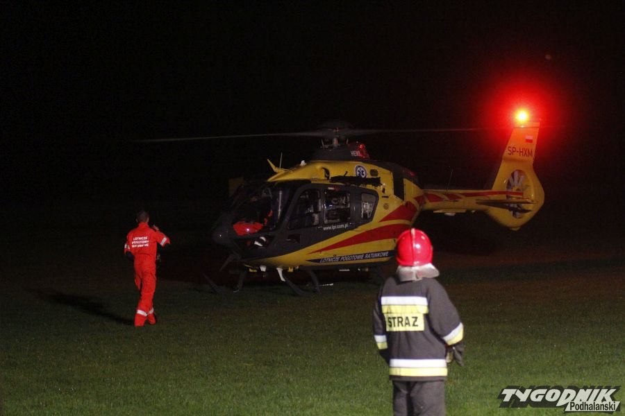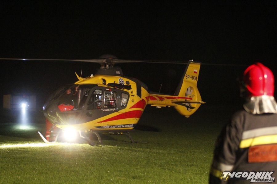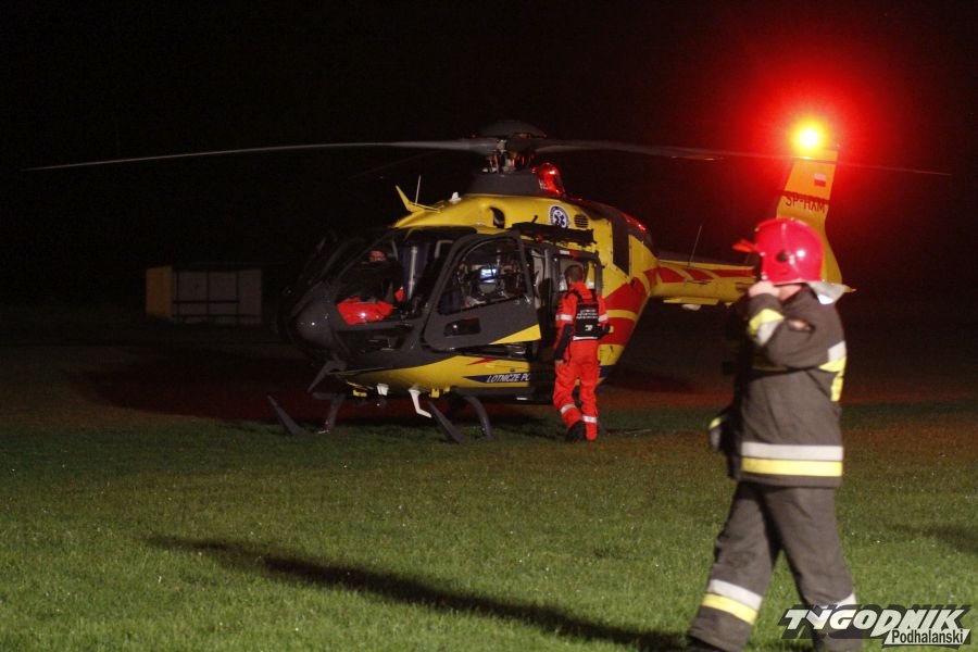Nocne lądowanie śmigłowca sanitarnego w Chabówce.