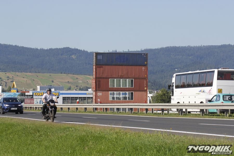 Tuż koło zakopianki w Nowym Targu stanęły jeden na drugim - cztery mieszkalne kontenery.