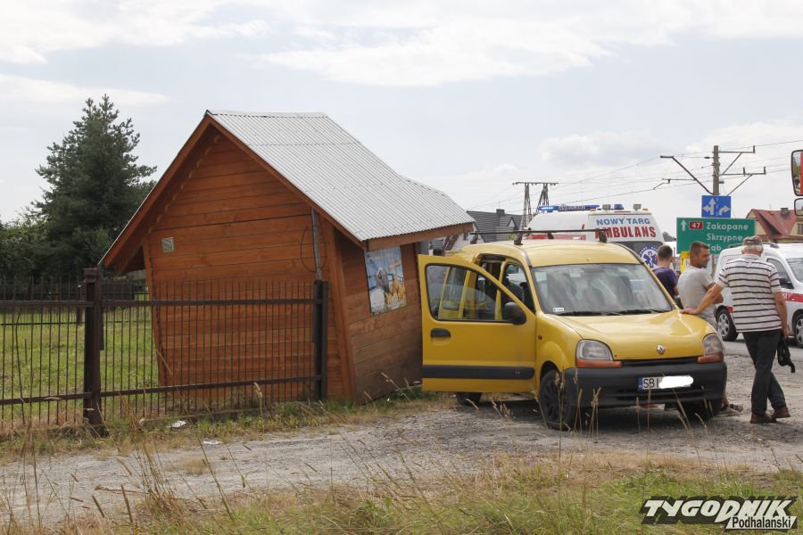 Samochód zderzył się z inną osobówką i uderzył w stojący przy drodze kiosk z produktami regionalnymi.