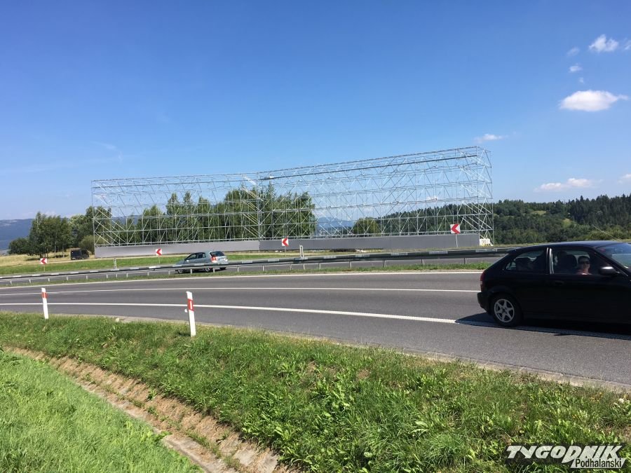 Reklama zniknęła - pozostała konstrukcja gigantycznej samowoli budowlanej przy zakopiance w Chabówce.