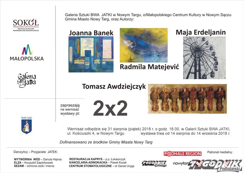 Nowotarska galeria BWA „Jatki” zaprasza w najbliższy piątek, 31 sierpnia, na wernisaż kolejnej wystawy.