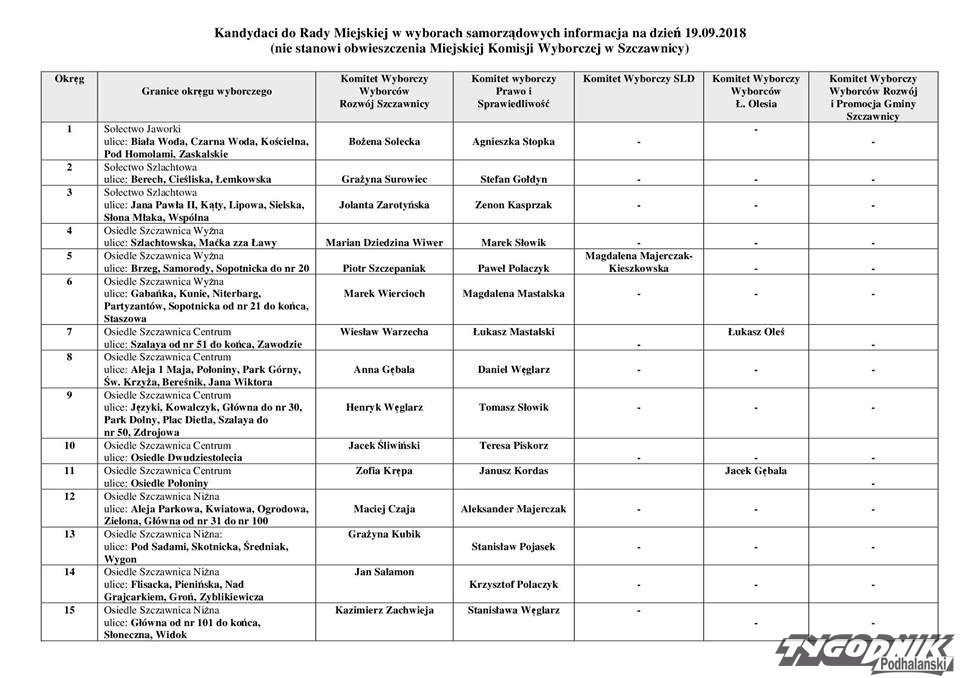 32 kandydatów ze Szczawnicy