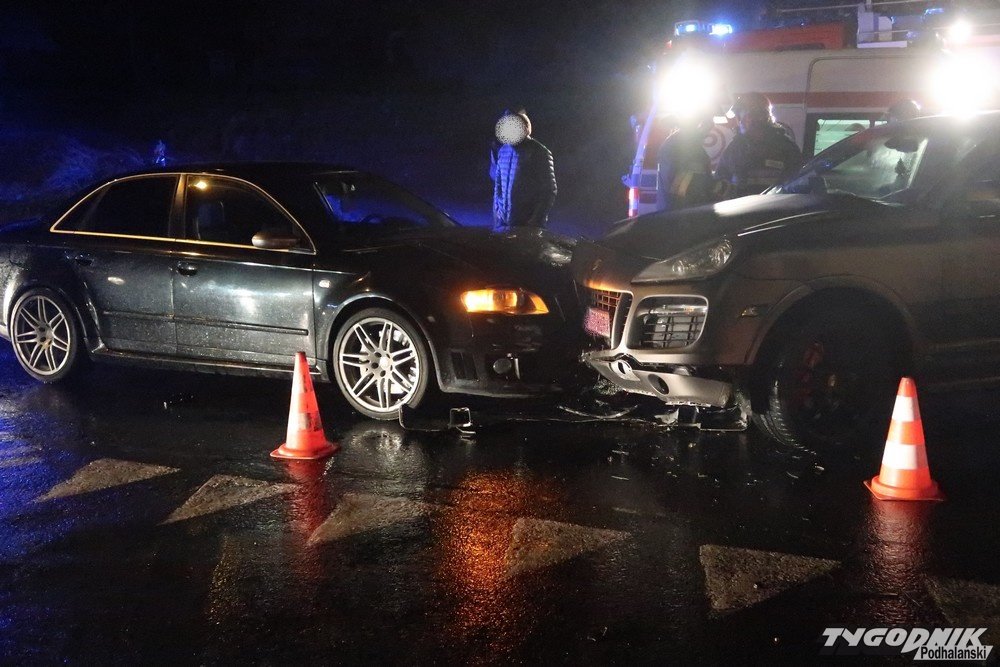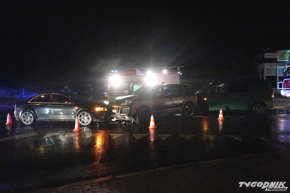 Jedno z aut skręcało z głównej drogi w lewo w stronę Spyrkówki i Harendy. Uderzyło w nadjeżdżający z naprzeciwka pojazd. W pierwsze auto wjechał jeszcze jadący z tyłu samochód.