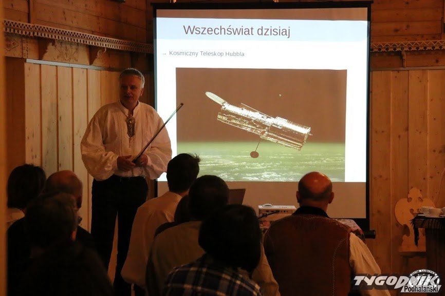 Tym razem w Domu Ludowym w Bukowinie Tatrzańskiej odbyło się spotkanie z dr hab. Pawłem Staszlem, który opowiedział o wszechświecie w skali makro i fento. Uczestnicy mieli okazję poznać zagadnienia związane z gwiazdami, galaktykami, ich ruchem czy posiadaną energią. Paweł Staszel z wielką pasją przedstawił również to, co gołym okiem jest niewidoczne np. budowę jądra atomu.