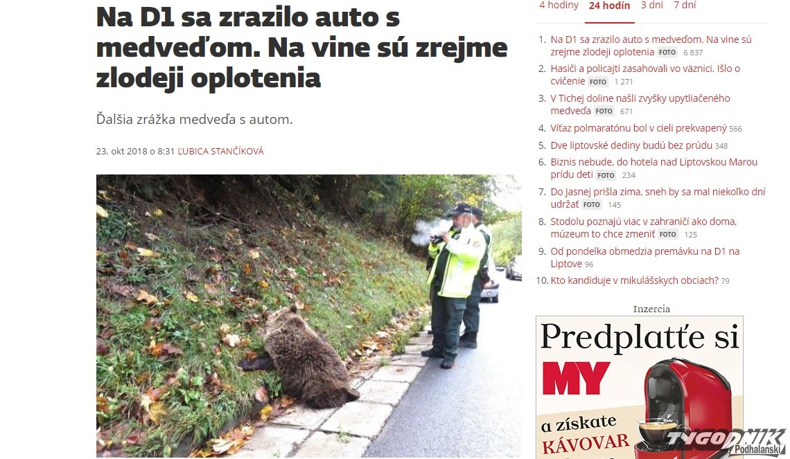 W okolicach Liptowskiego Mikulasza 3-letni niedźwiedź wszedł na autostradę wykorzystując lukę w zabezpieczającej drogę siatce - informuje słowacki portal dziennika SME.
