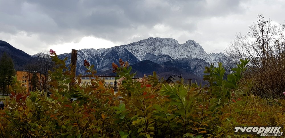 Chmury nieco przerzedziły się i możemy obserwować zaśnieżone Tatry.