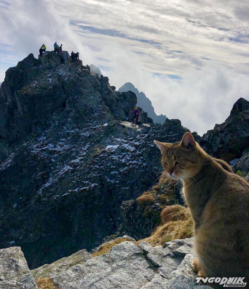 Wojtek Jabczyński, rzecznik firmy Orange, w czasie wycieczki na Rysy natknął się na kota. Mądry kociak najprawdopodobniej wybrał łatwiejszy szlak na najwyższy polski szczyt i zdobył go od strony słowackiej z kilkoma turystami.
