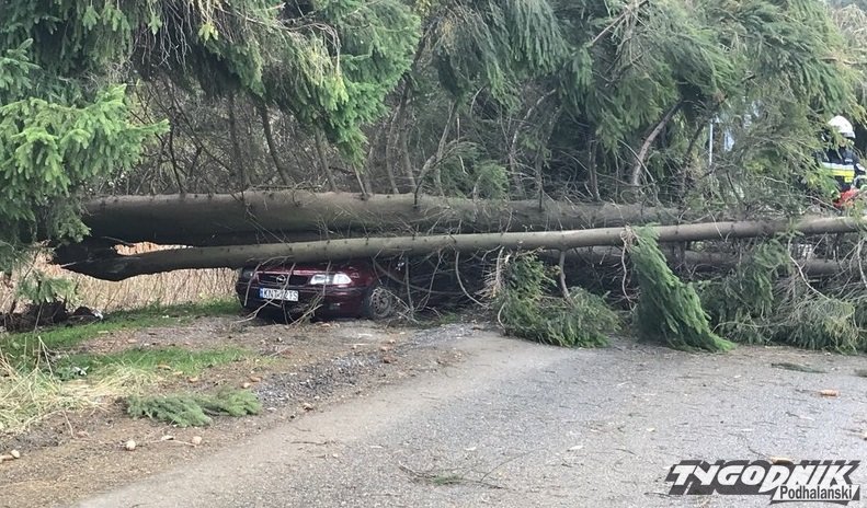 Halny powalił również sporo drzew w Zakopanem na Gubałówce. Potężne pnie zablokowały przejazd drogą przez Gubałówkę, zniszczyły też jeden z samochodów osobowych zaparkowanych na poboczu. Strażacy mają pełne ręce roboty przy usuwaniu wiatrołomu.