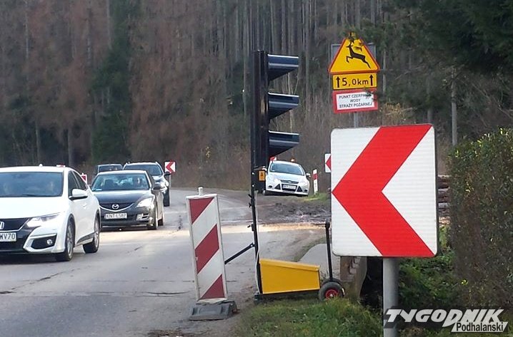 Silny wiatr, o którym piszemy od rana przestawił sygnalizacje świetlną. Ze względu na remont ruch odbywa się tam wahadłowo.