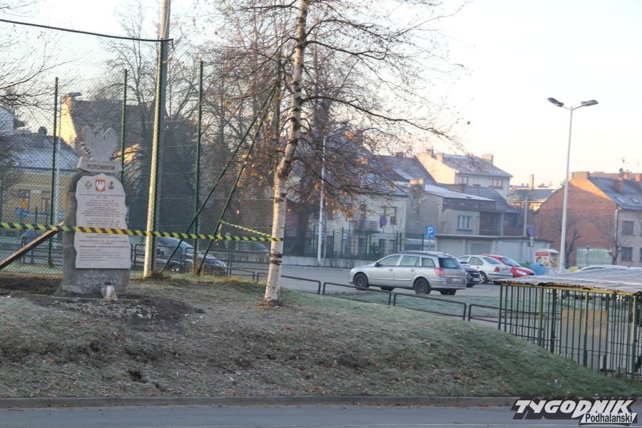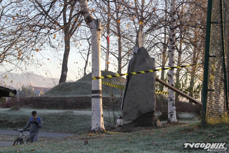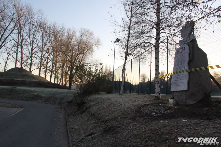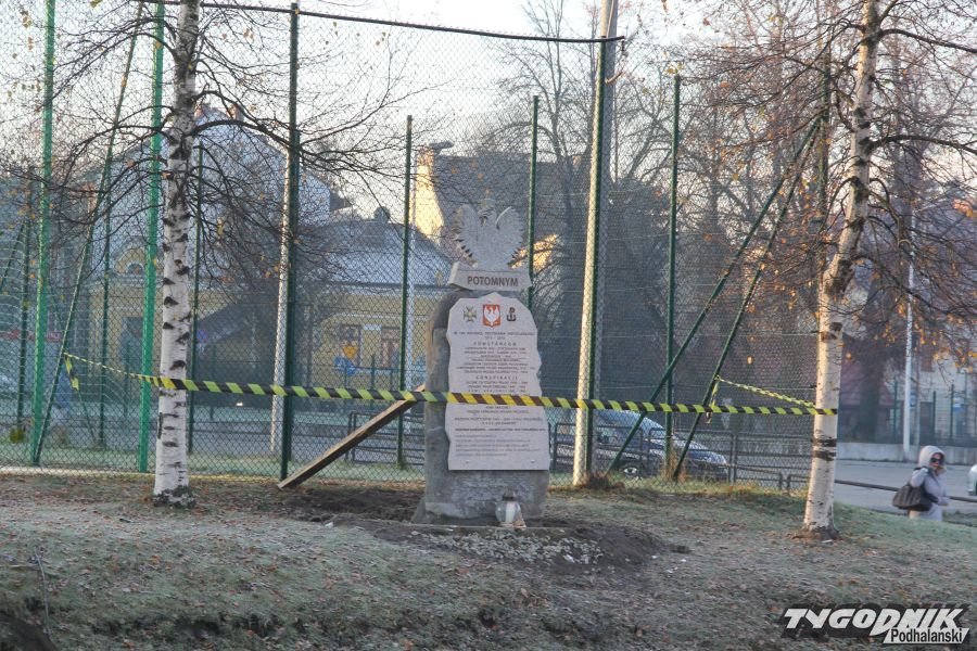Postument budził od początku kontrowersje. Część nowotarskich radnych oburzyło umieszczenie wśród fundatorów nazwiska burmistrza, inni podkreślali brak pytania rady o zgodę na postawienie tablicy w tym miejscu. Ktoś zawiadomił nadzór budowlany, że pomnik nie ma pozwolenia na budowę. Fundatorzy z Niezależnego Światowego Związku Żołnierzy AK przekonywali, że to tylko tablica, na którą pozwolenia nie trzeba. Ostatecznie tablica zniknęła spod kopca, by pojawić się wczorajszego wieczoru około 100 metrów dalej przy ogrodzeniu należącego do starostwa zespołu szkół.