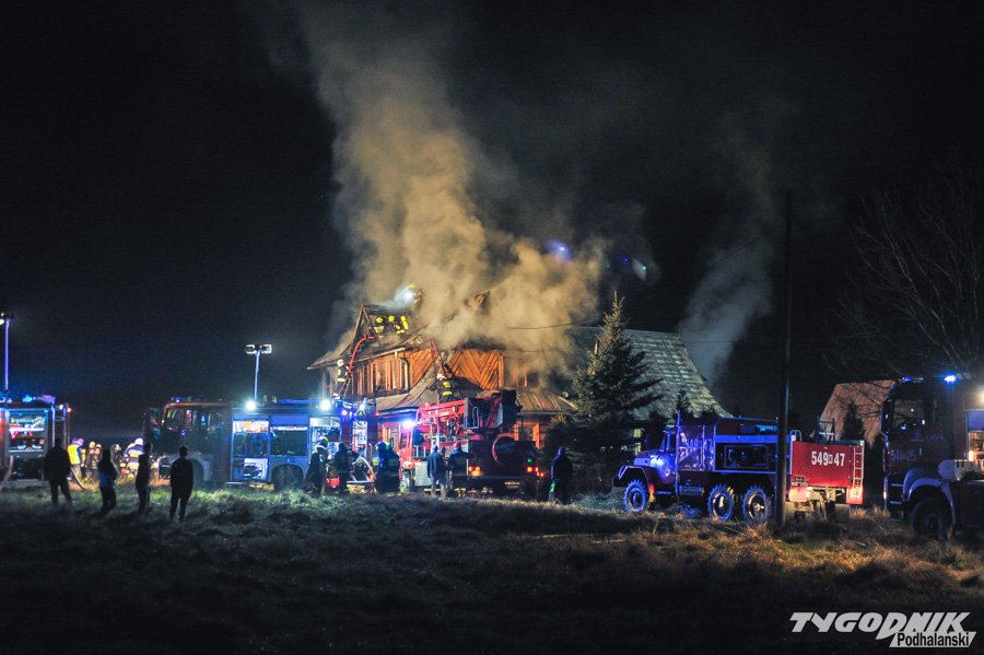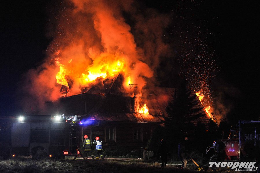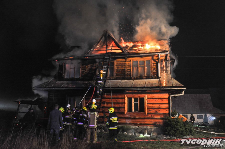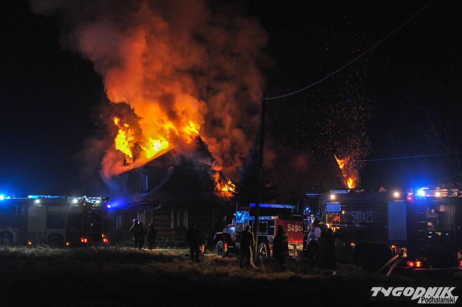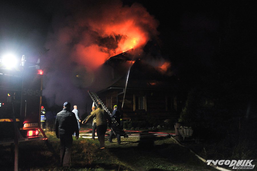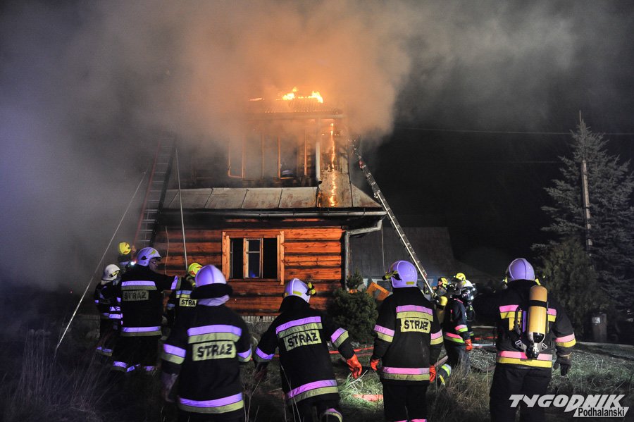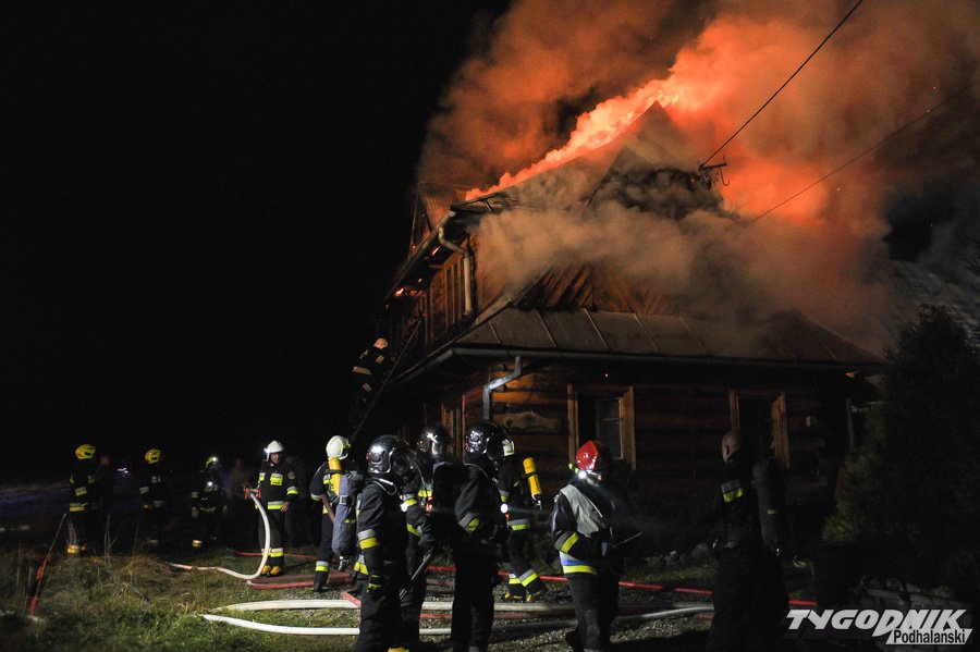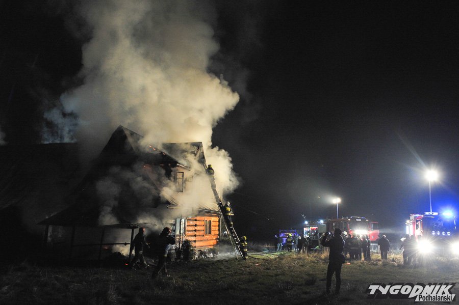 Około 10 jednostek straży dogasza pożar na os. Klusie na Olczy. Ogień pojawił się ok. godz. 21. W drewnianym budynku najprawdopodobniej nikogo nie było i nikt nie ucierpiał.