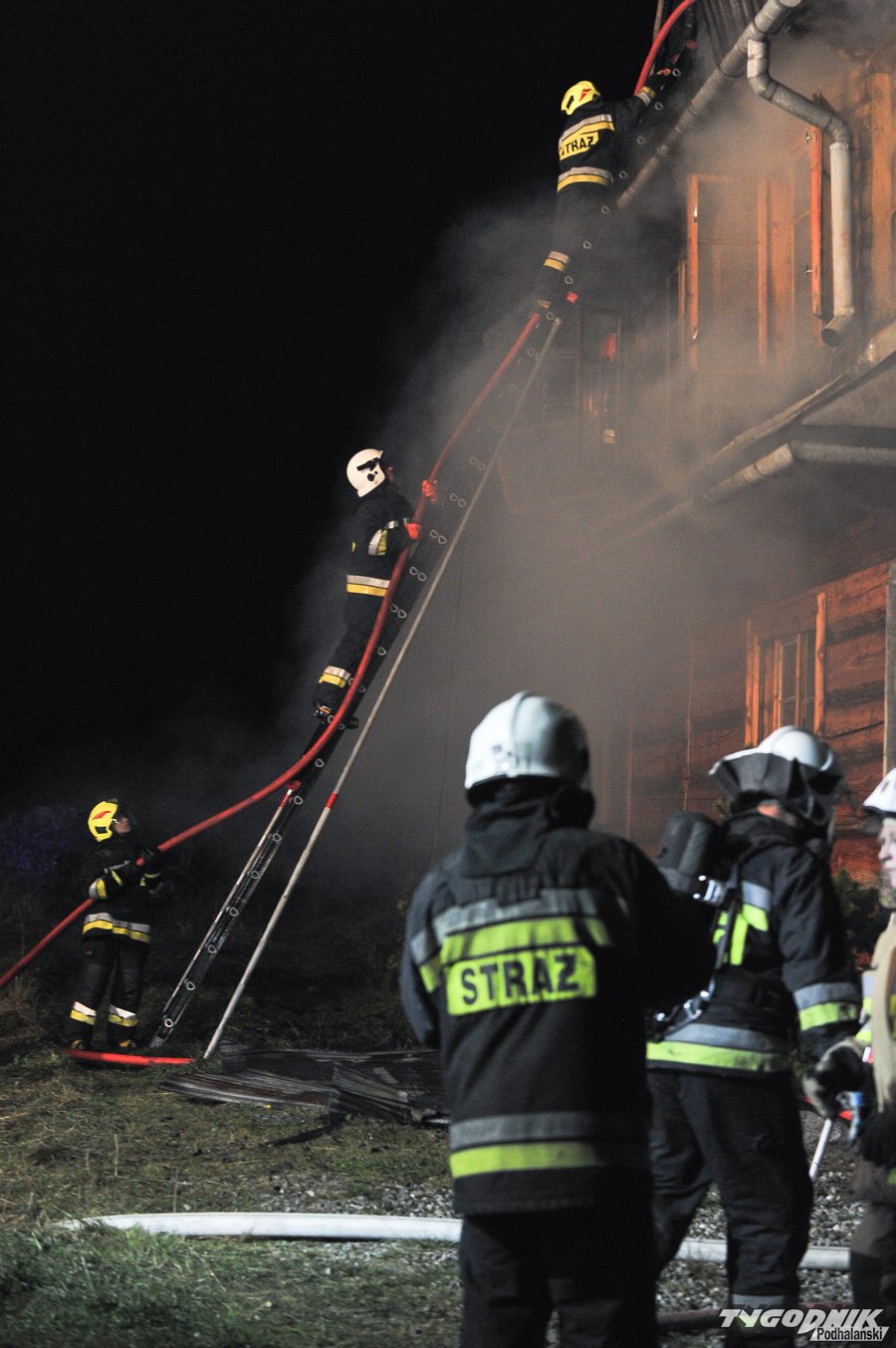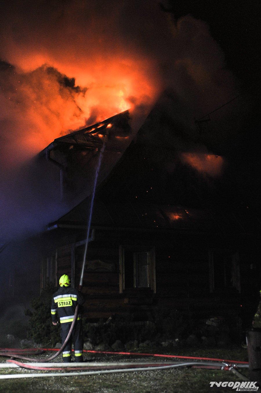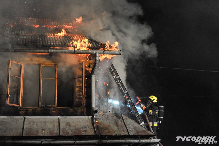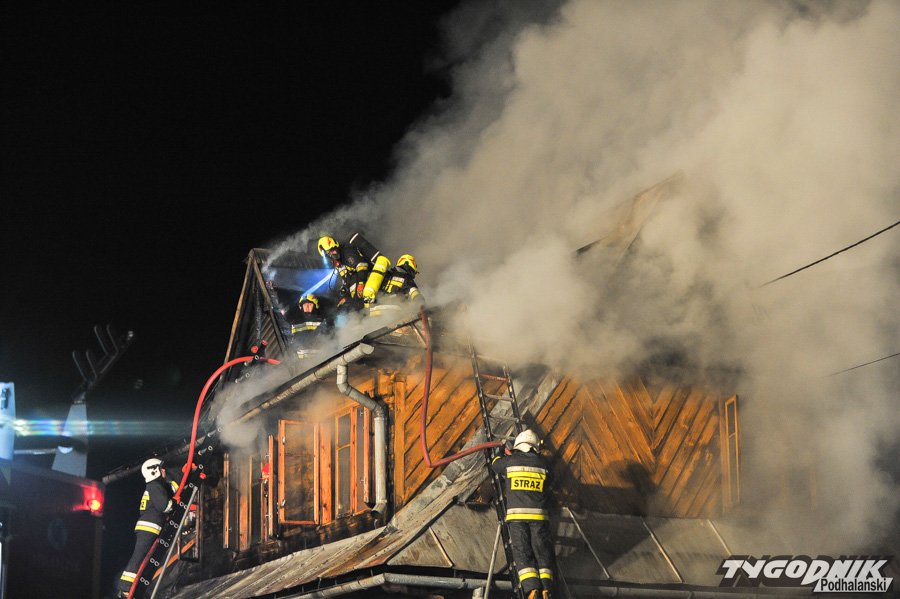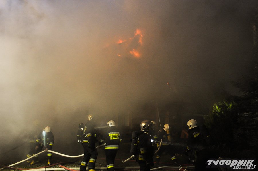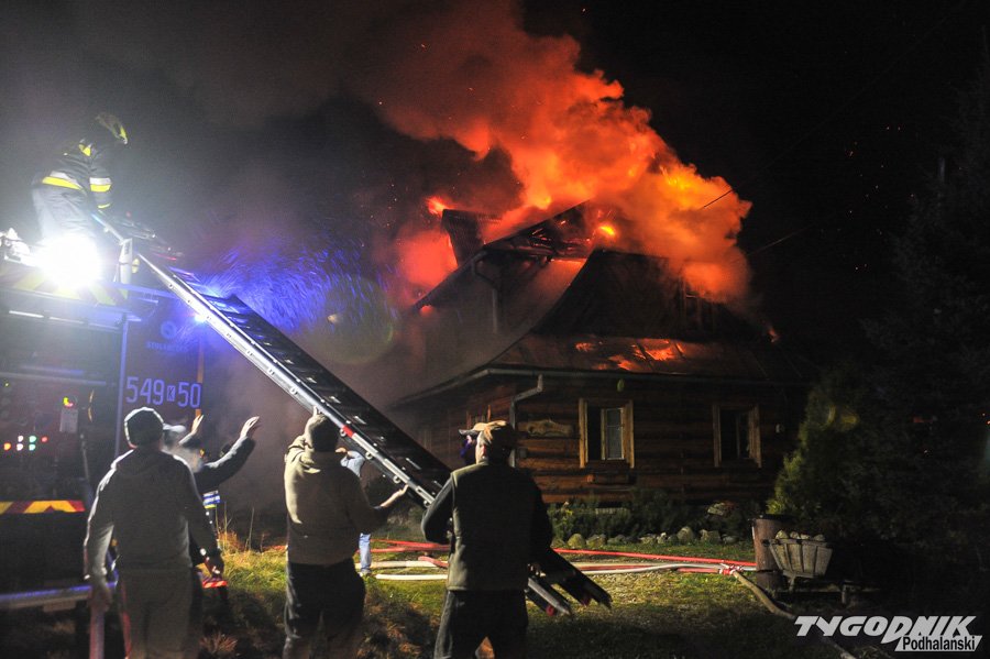 Około 10 jednostek straży dogasza pożar na os. Klusie na Olczy. Ogień pojawił się ok. godz. 21. W drewnianym budynku najprawdopodobniej nikogo nie było i nikt nie ucierpiał.