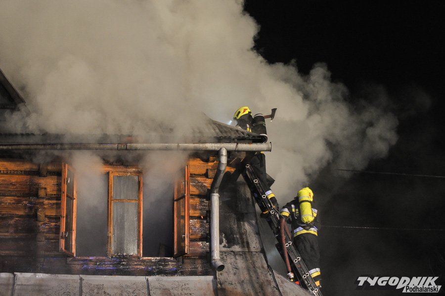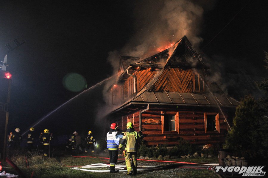 Strażacy dogaszają pożar na Olczy w Zakopanem.