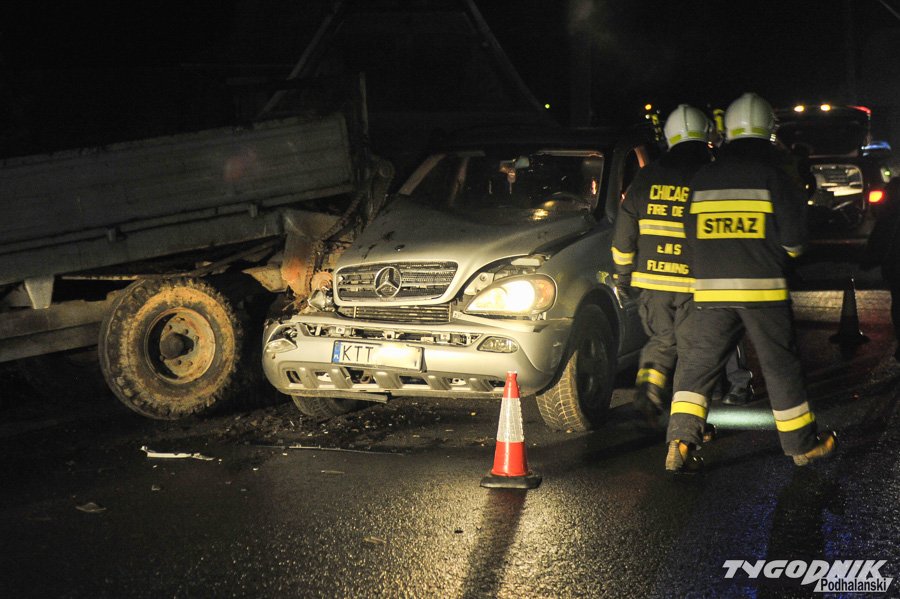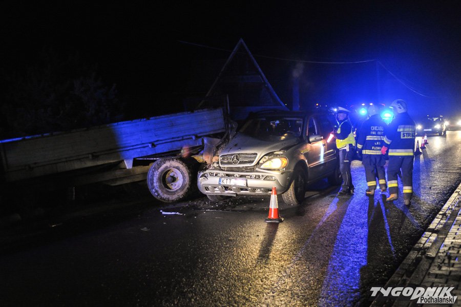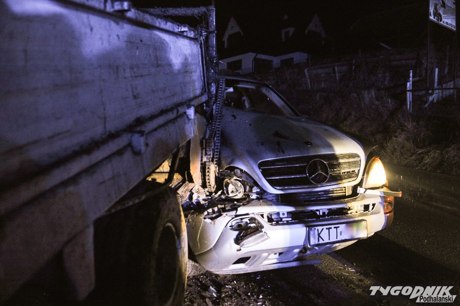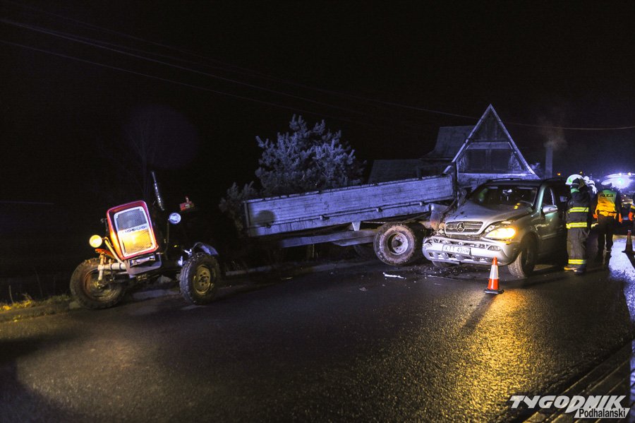 Mercedes wjechał w nieoświetlony ciągnik