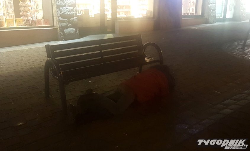Na dolnych Krupówkach na ławce leżał mężczyzna. Po telefonie od jednego z mieszkańców policja pojawiła się błyskawicznie.