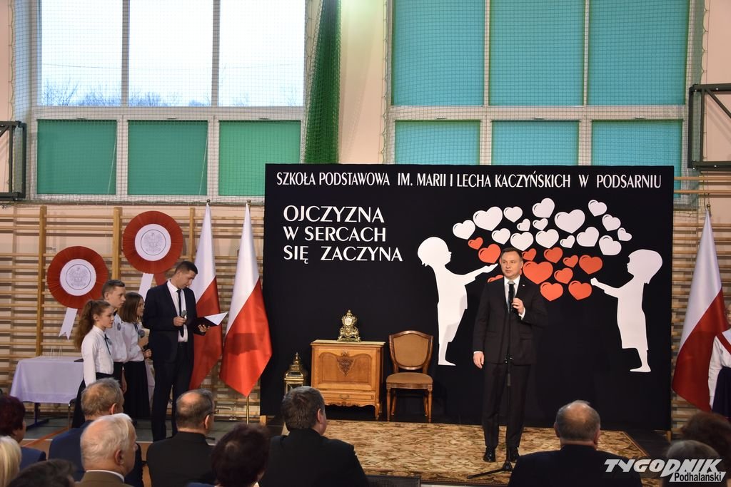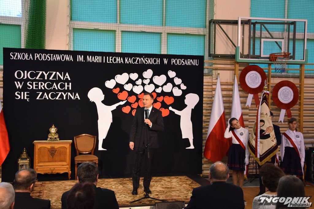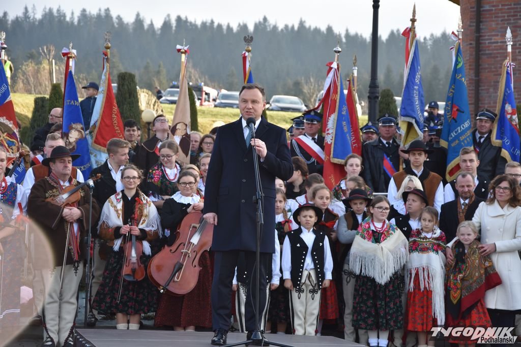 Około 0,5 km prezydent Polski maszerował przez orawską wieś. Andrzej Duda gościł dzisiaj w Podsarniu. Odsłonił tam pomnik zasłużonych w walce o polską niepodległość.