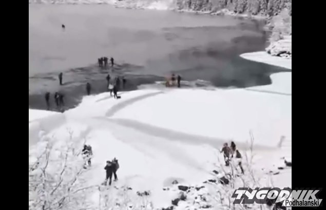 Szwed na łyżwach bił rekord prędkości w przejeździe po zamarzniętej tafli Morskiego Oka, kibicowało mu kilkadziesiąt osób, w tym matki z dziećmi.