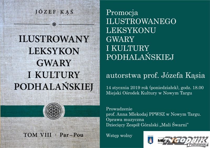 Nowotarski Miejski Ośrodek Kultury zaprasza w najbliższy poniedziałek, 14 stycznia, na promocję „Ilustrowanego leksykonu gwary i kultury podhalańskiej” autorstwa prof. Józefa Kąsia.