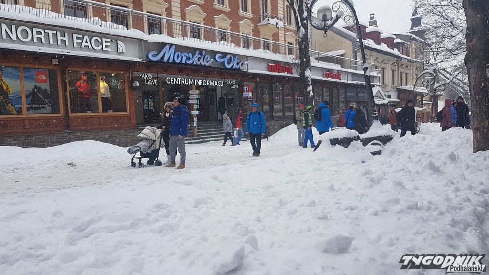 Mimo, że służby miejskie wywoziły już śnieg z Krupówek, to po deptaku nadal chodzi się bardzo trudno.