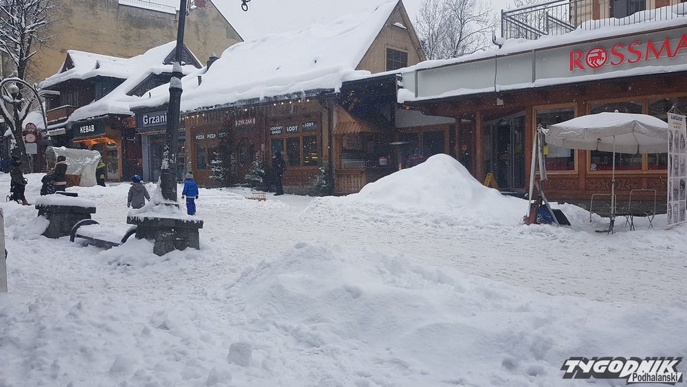 Na Krupówkach nadal zwały śniegu