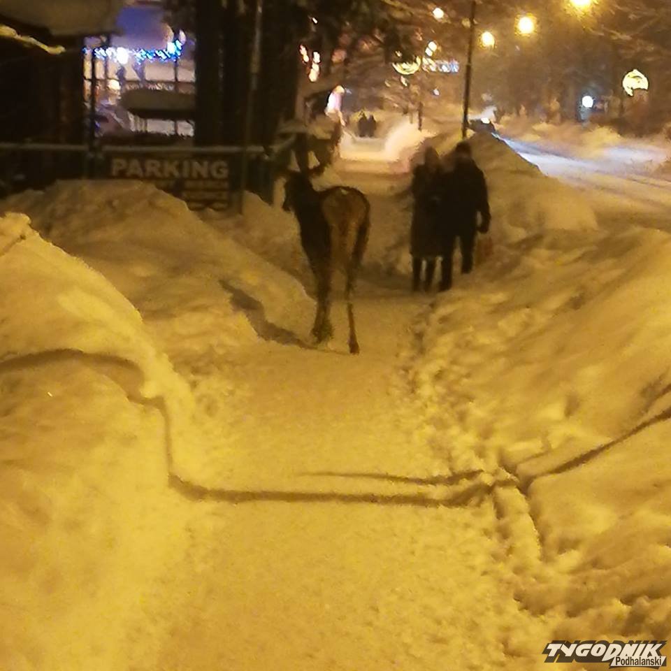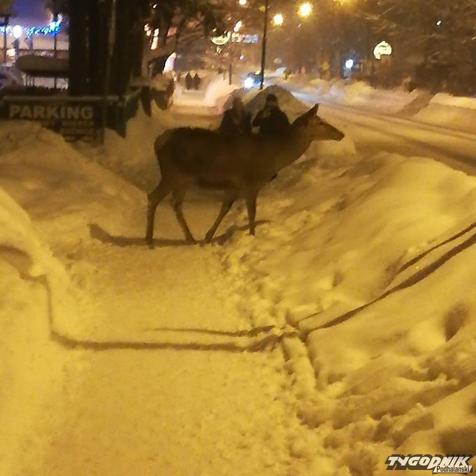 Sroga śnieżna zima sprawia, że łanie ponownie można spotkać na zakopiańskich ulicach.