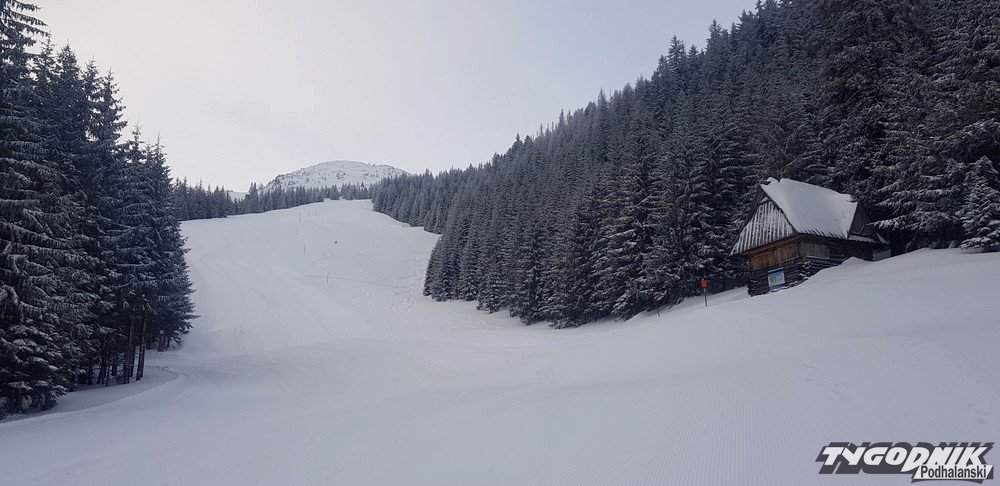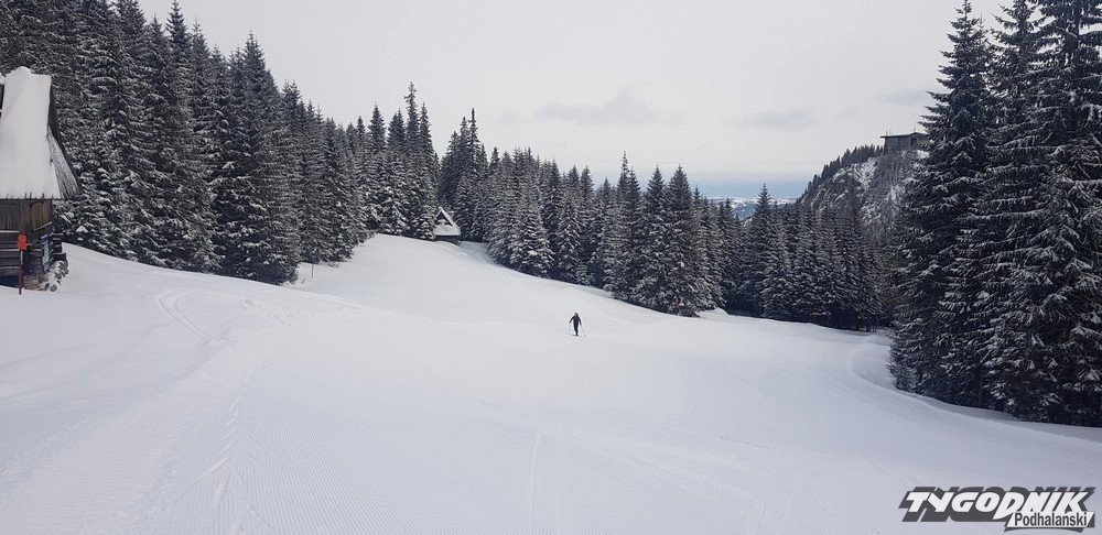 Na szczycie Kasprowego - 12 st. C., w Kuźnicach - 4. Narciarzy na razie niewielu. Dopiero teraz na górę zaczynają też podchodzić skiturowcy.