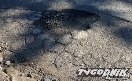 Dziura powiększa się z każdym dniem. Kierowcy uważajcie. Pułapka znajduje się niedaleko wyjazdu z Biedronki. Trudno ją też ominąć, bo częściowo wjedziemy na przeciwległy pas. Trzeba po prostu zwolnić.