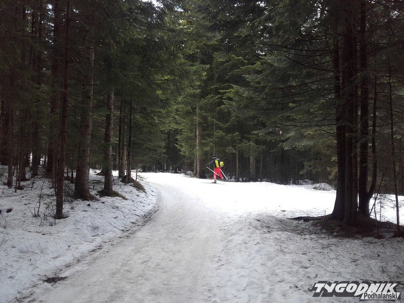 Kto lubi relaks na biegówkach, może jeszcze skorzystać z tras biegowych pod reglami. Dziś rano tłumów nie było, a rosnące temperatury i słoneczna pogoda mogą szybko rozprawić się z coraz bardziej cienką warstwą śniegu.